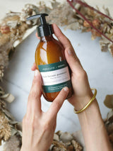 Marina, la fondatrice d'Océopin, conseille de l'utiliser chaque soir en locataire à la maison, comme un nouveau rituel. Appliquer une pompe de lait sur les mains déjà humides, émulsionner puis rincer abondamment.